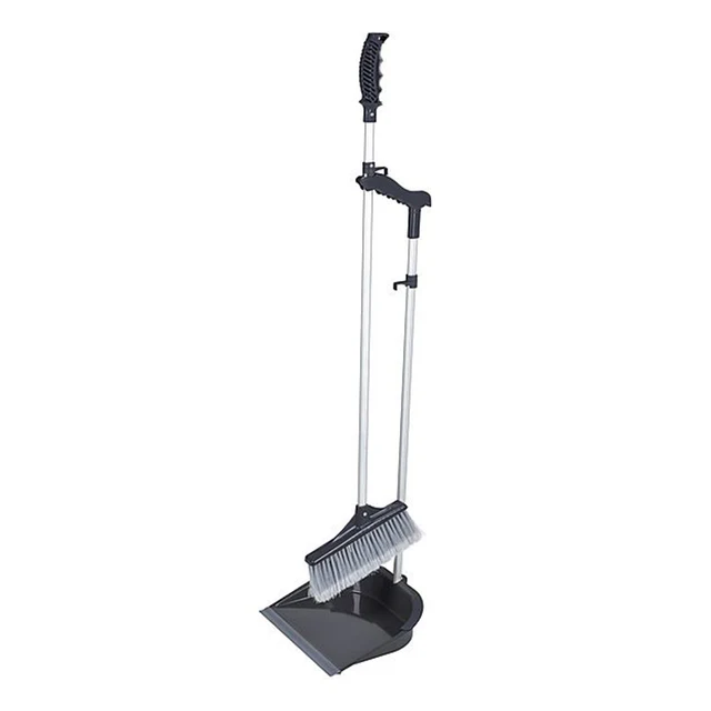 Durable steel dustpan with an aluminium handle that is perfect for home and B2B. Durable long-lasting steel pan and aluminium handle. Effective brush cleaner that removes dust from the brush. Soft grip handle for better comfort.